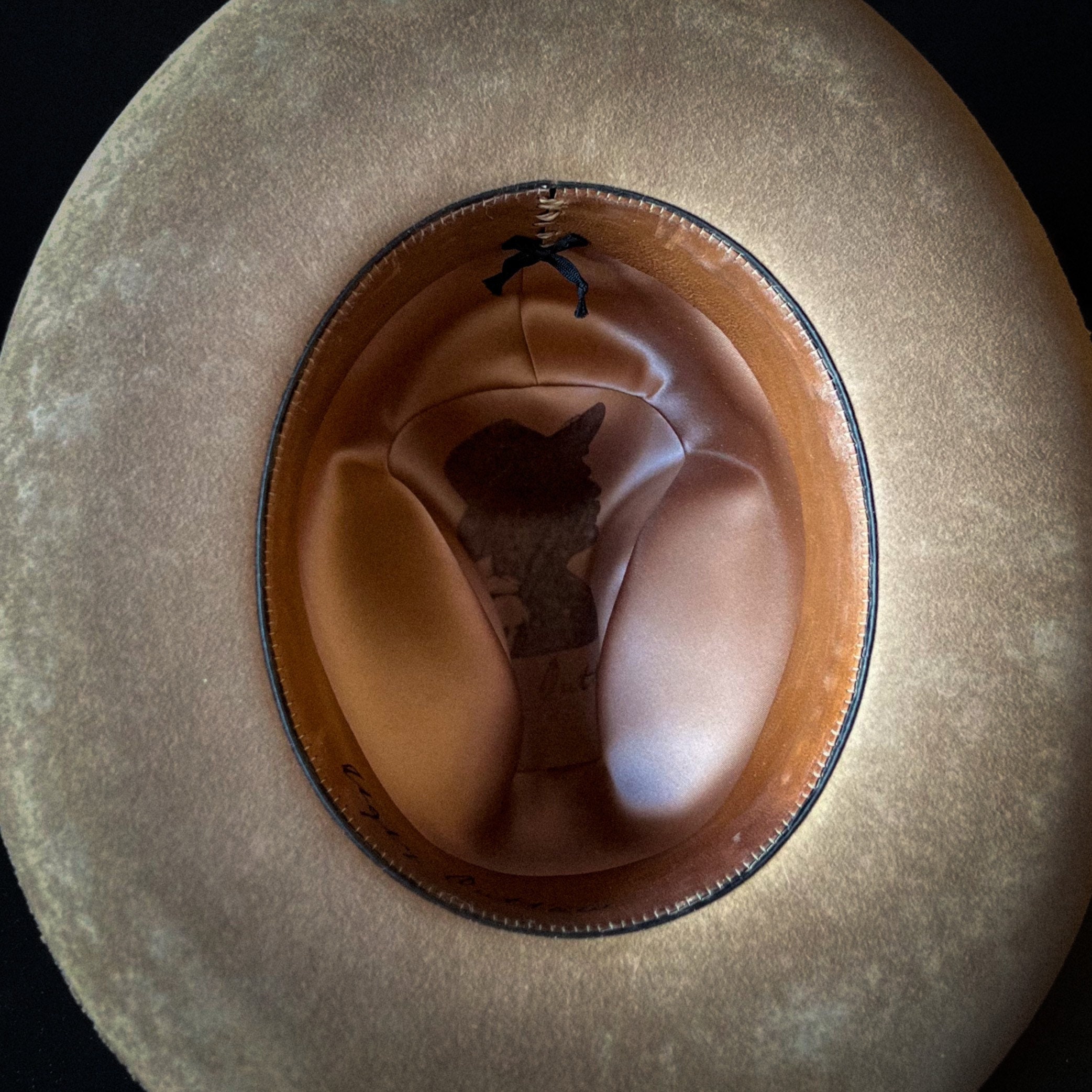 Kettle curl brim with ribbon trim. The inside has a comfortable calf sweatband with a satin liner.