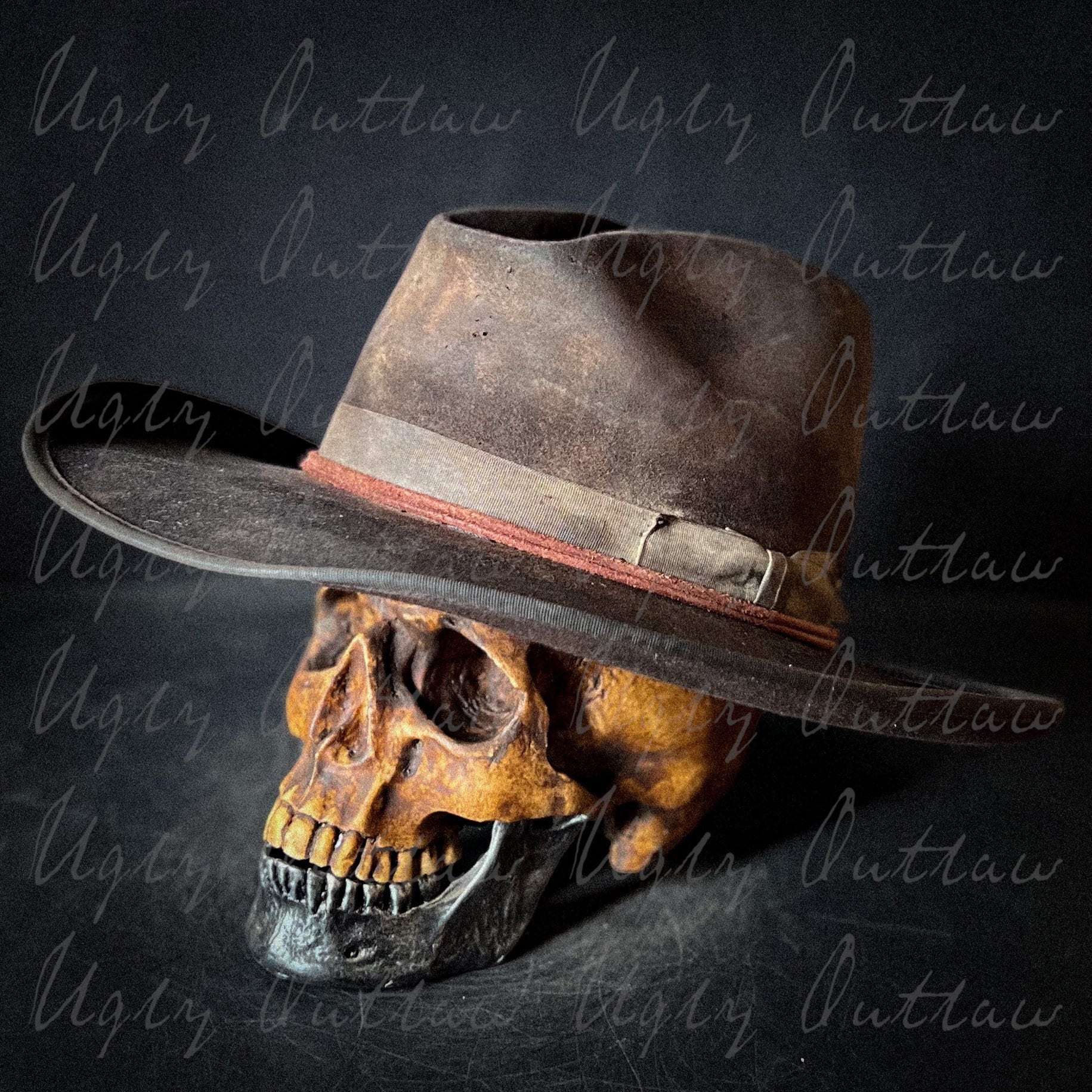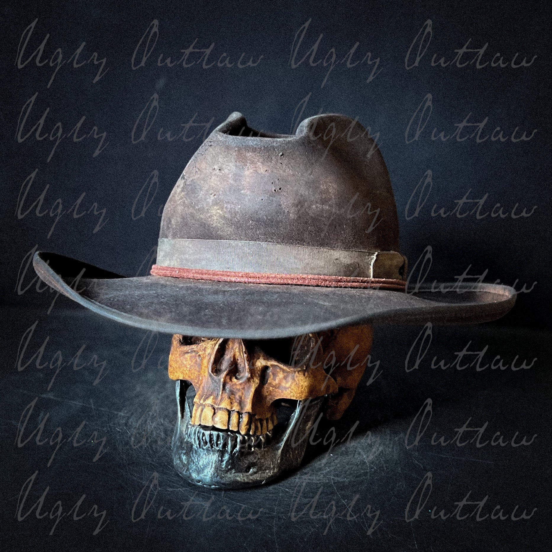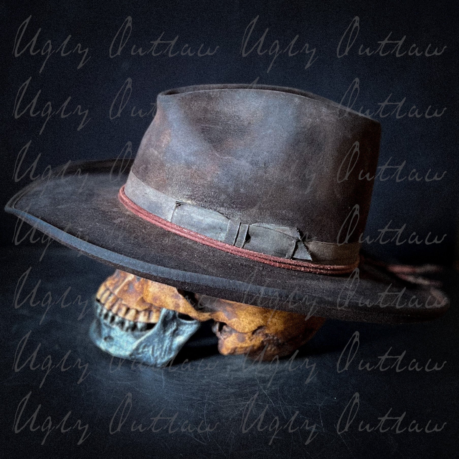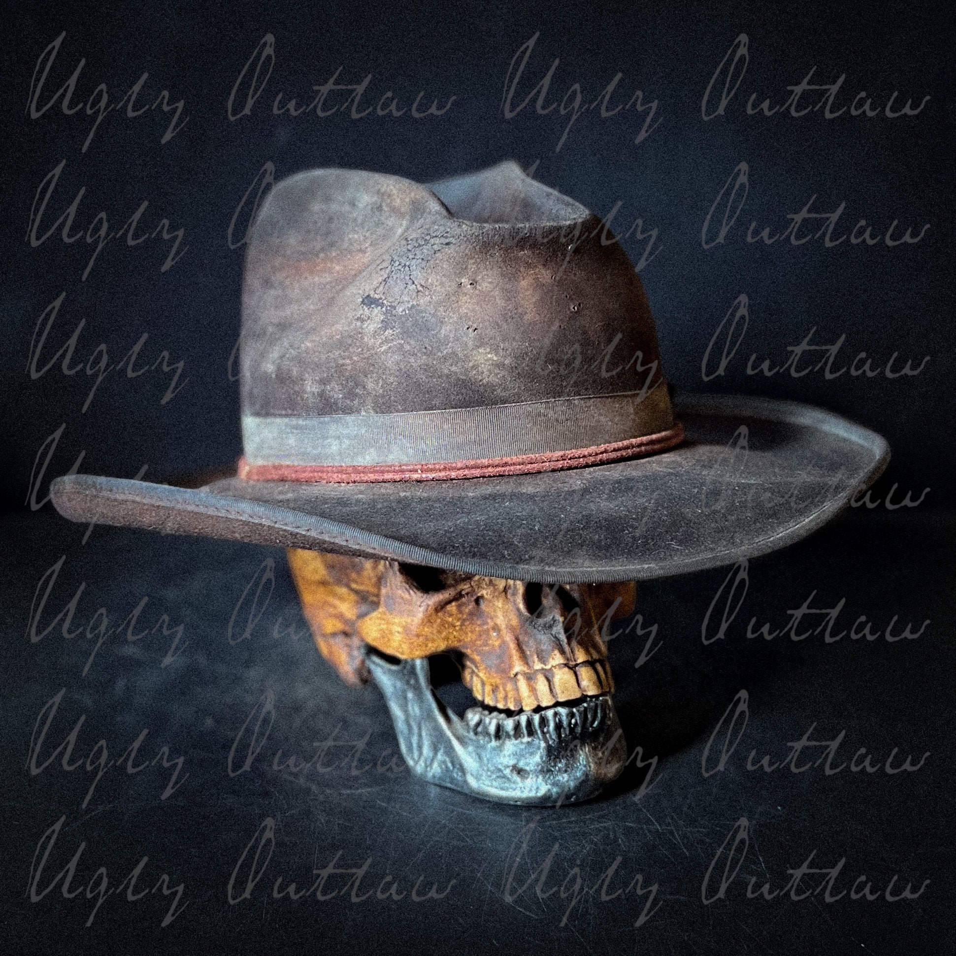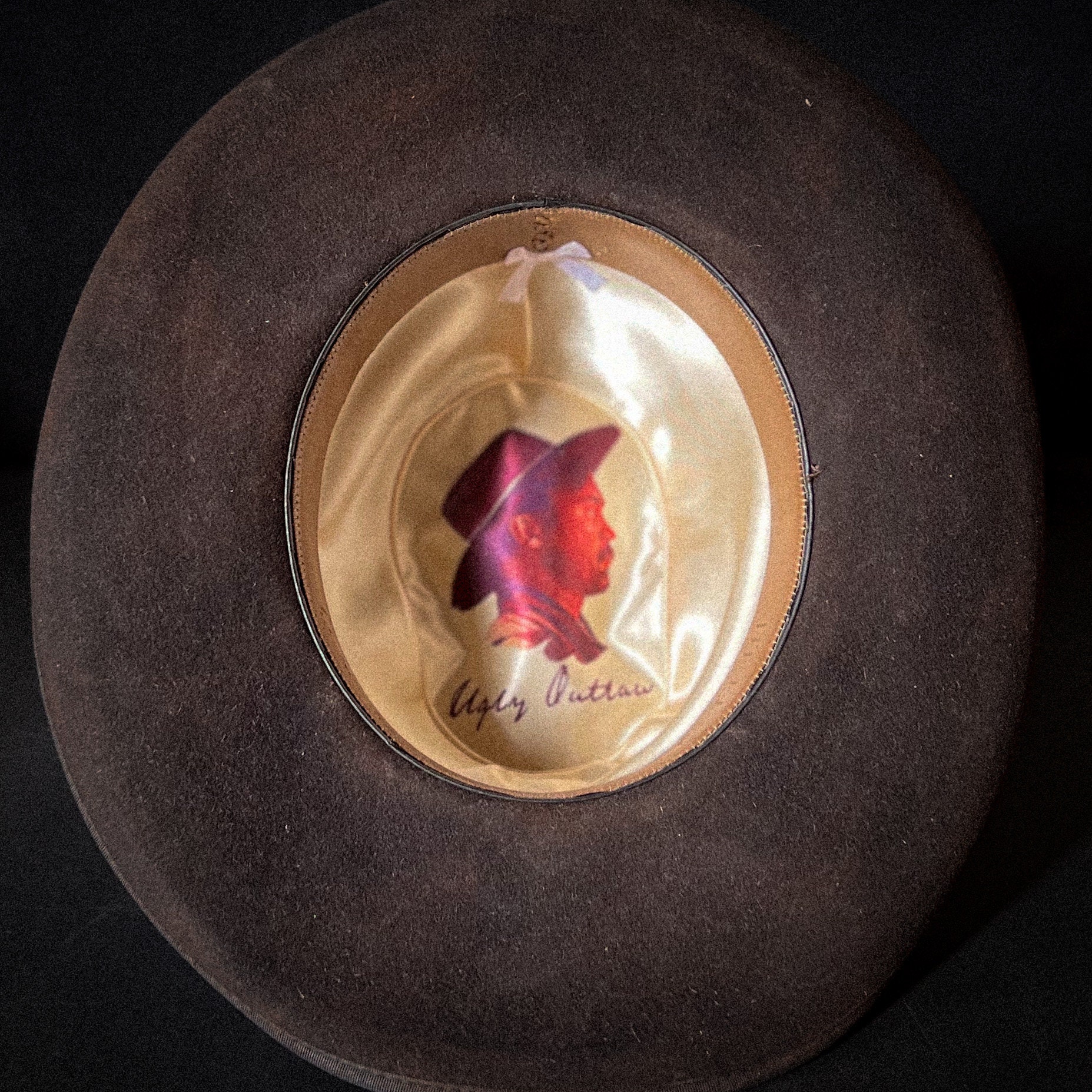 Inside is a comfortable calf leather sweatband and a satin liner that bares the Ugly Outlaw logo. Handmade, one of a kind from Ugly Outlaw Hats!
