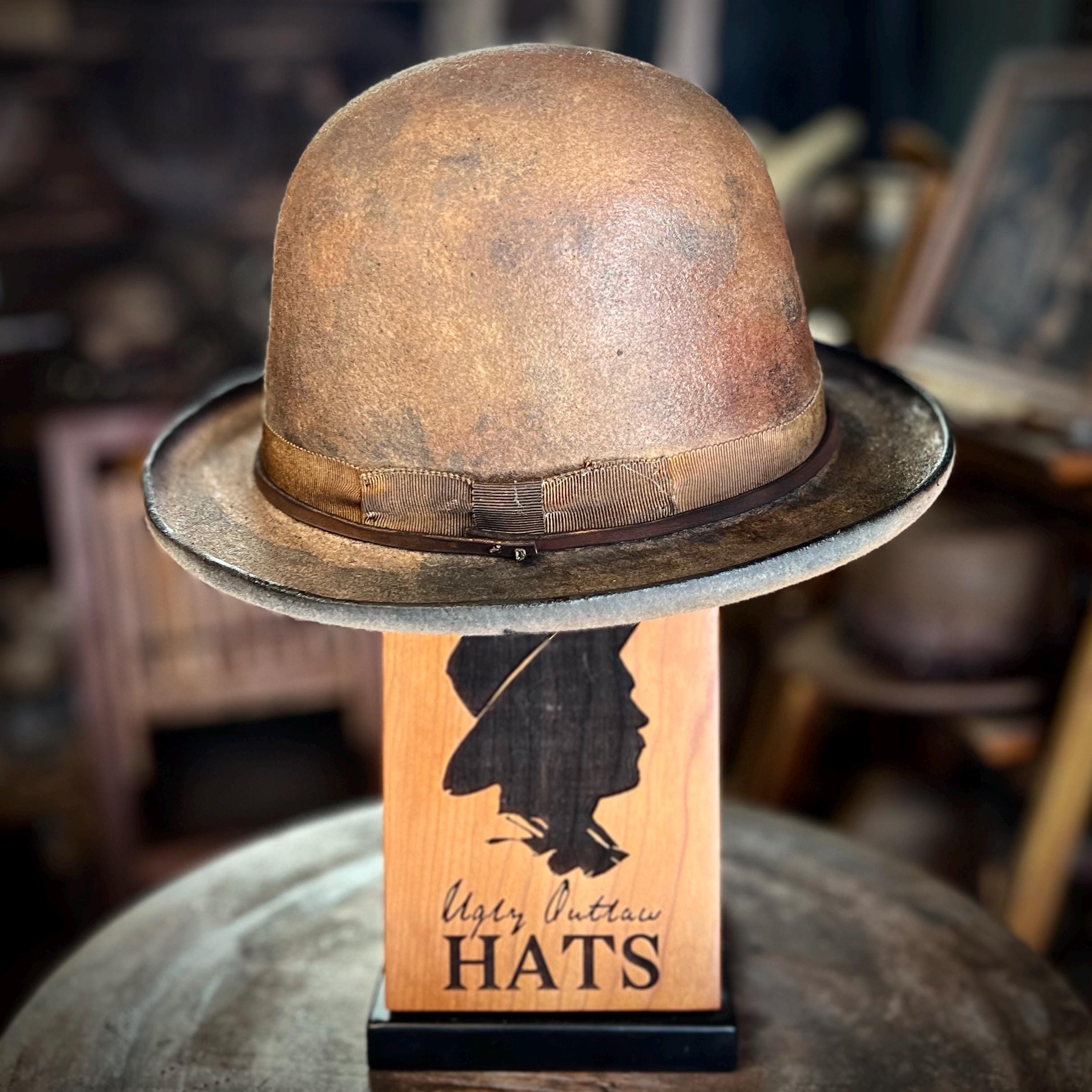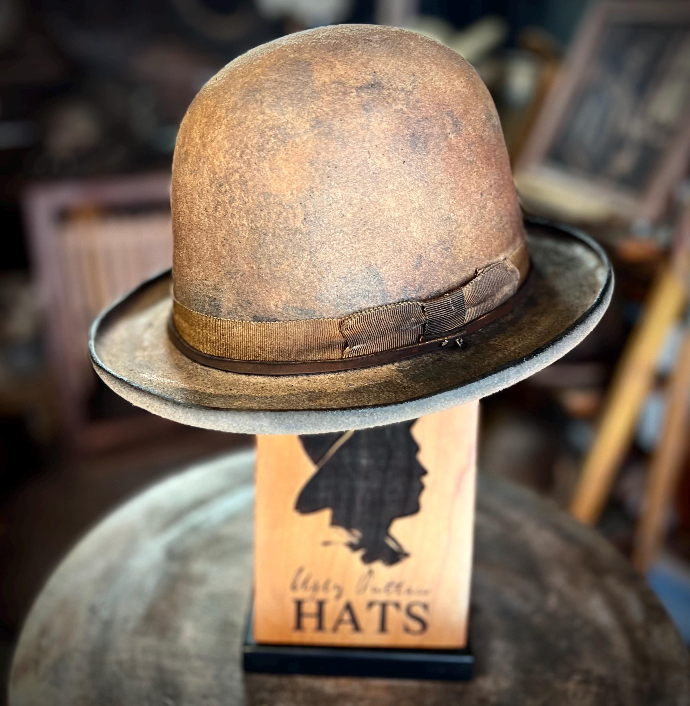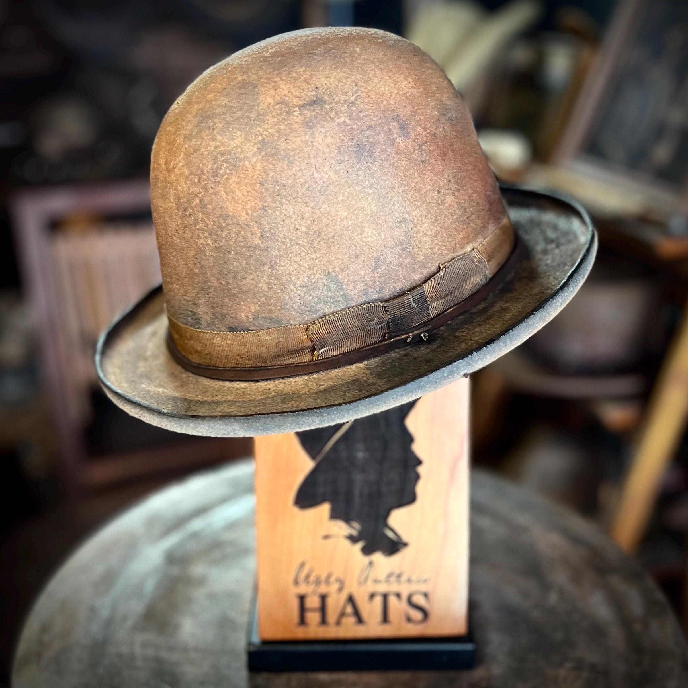 Yes! The majority of the hats on the site are handmade. On some occasions I will restore a vintage hat by giving it a new shape and look . Those hats will always be labeled as “Restored” with a description. Making hats is a process. A hat can sometimes take a week to make. A blank piece of felt or beaver fur is made wet with hot water, it’s molded over a particular hat block of whatever size I choose to make that day, it’s ironed, steamed, sanded, steamed some more, shaped, then sprayed with hardener, shaped even more, then the band is added, etc, and so on.