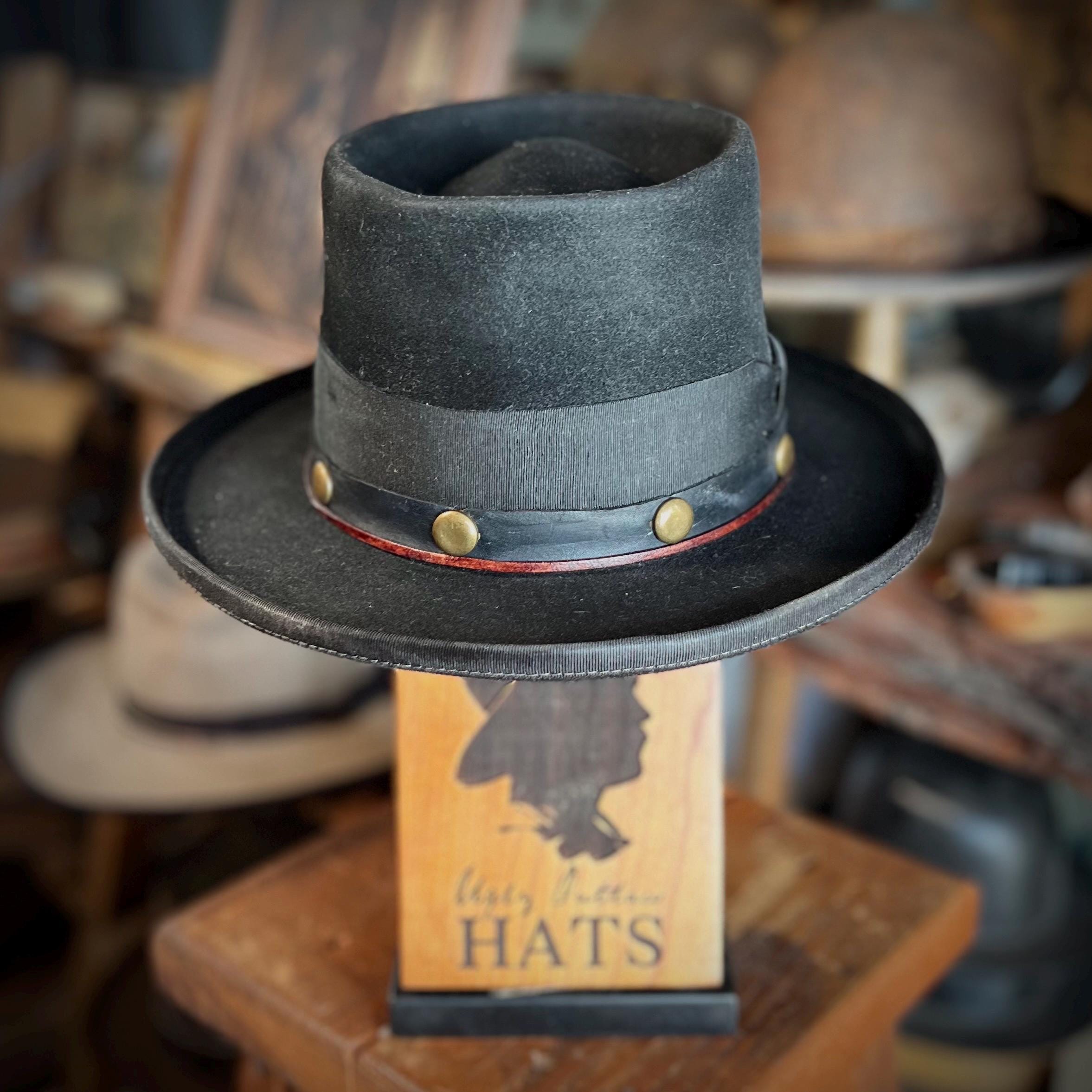 Yes! The majority of the hats on the site are handmade. On some occasions I will restore a vintage hat by giving it a new shape and look . Those hats will always be labeled as “Restored” with a description. Making hats is a process. A hat can sometimes take a week to make. A blank piece of felt or beaver fur is made wet with hot water, it’s molded over a particular hat block of whatever size I choose to make that day, it’s ironed, steamed, sanded, steamed some more, shaped, then sprayed with hardener, shaped even more, then the band is added, etc, and so on.